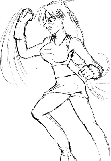 A pic Tim drew of Tifa from Final Fantasy VII. With mammaries. And a keen fighting pose. Yum!