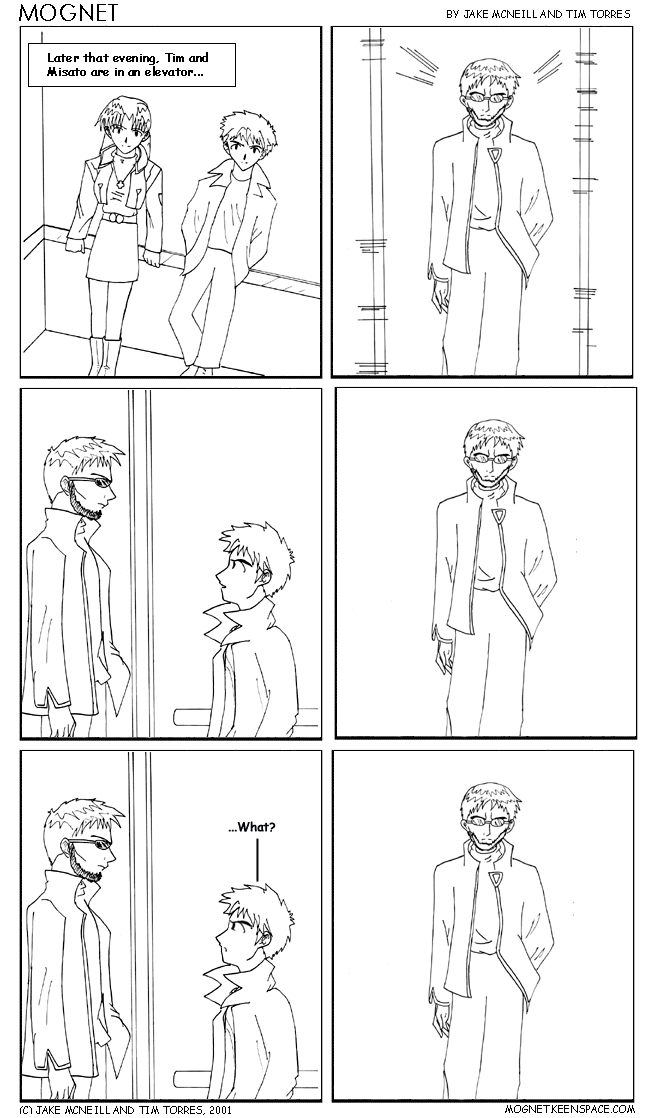 To enter, You simply have to think of a good line for Gendo (The guy with glasses) to say in the last panel of this strip. Being familliar with Evangelion may help, but is not by any means necessary. As long as it's funny, that's all ya' need.